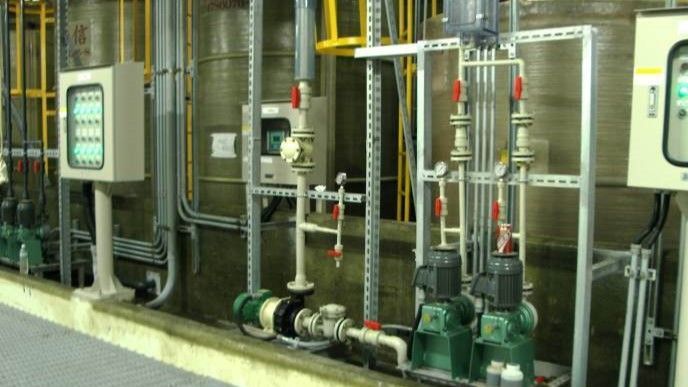 冷卻水塔配管、廢水輸送泵配管、藥液供給配管、壓泥機配管